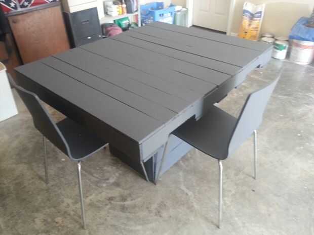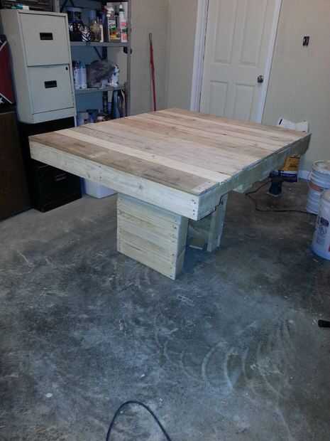 Aquí está mi mesa de palet con incrustaciones de logo. La parte superior está hecha de madera plataforma que fue arrancado y cortado a la medida. El logo fue cortar en un router CNC y empotrado en la parte superior. ¡ Disfrute!Paso 1: Plataforma made