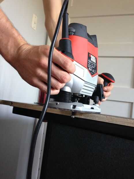 Utilizar un router de inmersión con un poco de fresadora al ras para limpiar las pestañas (triángulos pequeños que mantienen piezas en su lugar en el ranurador CNC)