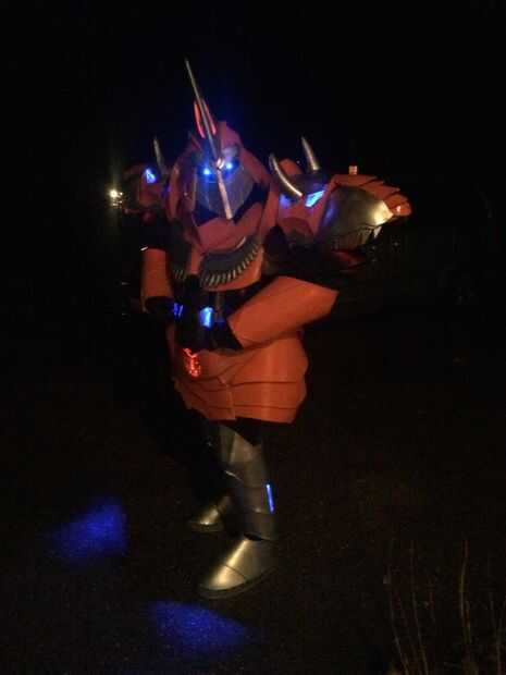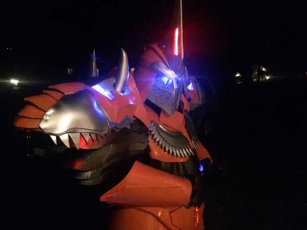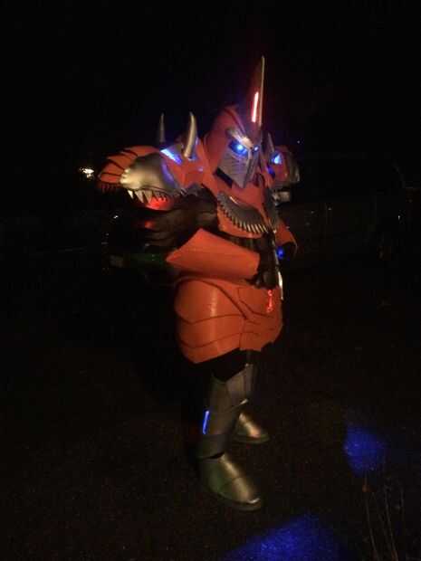 He añadido el LED recientemente para hacer este traje parece un transformador! Los ojos, logo, Bocas del T-rex y armadura frontal iluminado y sin duda hizo el traje no sólo parecen más asombrosos, pero como si yo realmente era un robot de otro planeta!