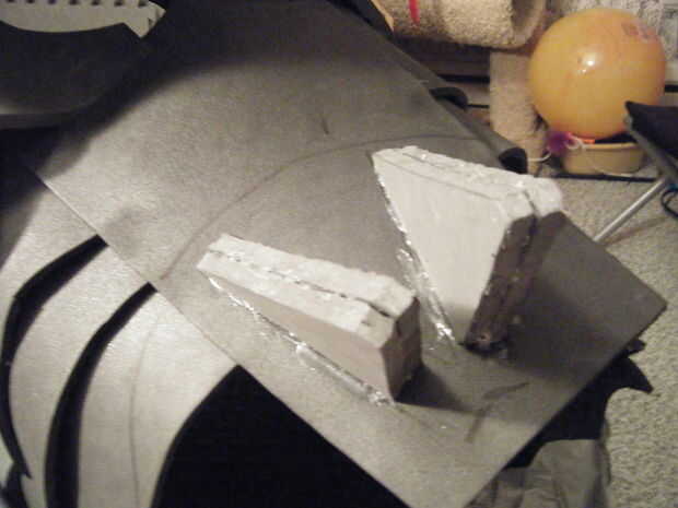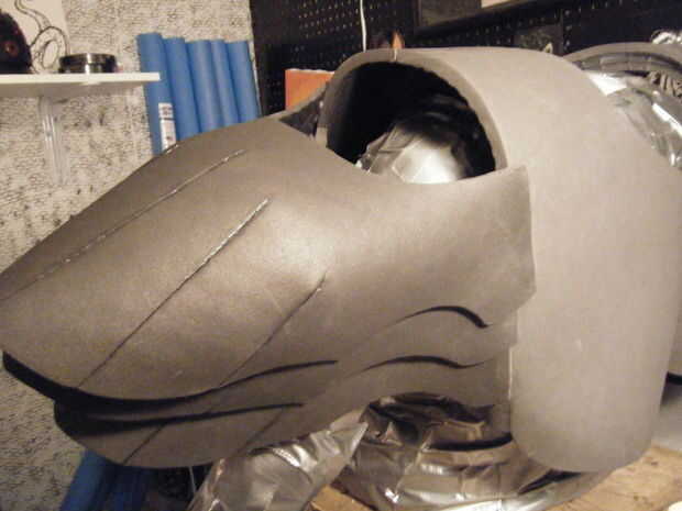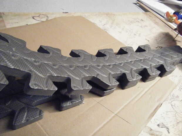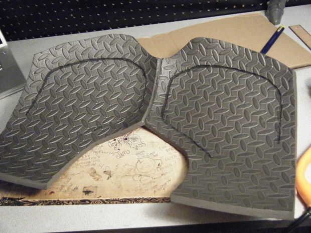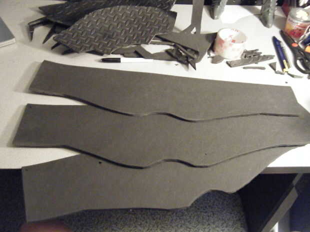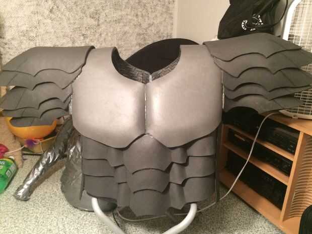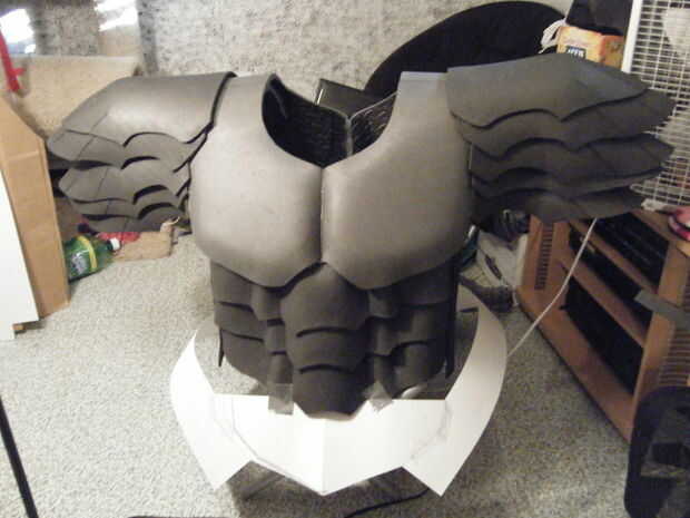La armadura de cuerpo principal incluye pecho y abdominal armadura, armadura posterior, lados, armadura de hombro y finalmente baja falda de la armadura. Todas estas piezas fueron construidos sobre unos a otros y es muy importante tomarse el tiempo para reforzar todas las áreas con mucho pegamento y espesores diferentes de espuma como están construyendo! Empecé con la pieza del pecho, a hacer de la espuma más gruesa. Todo el resto de la armadura de cuerpo, que no sea de la parte superior de la falda inferior de la armadura, se hace de espuma más fina. Esto permite que la armadura se siente mutuamente sin llegar a heavy etc..