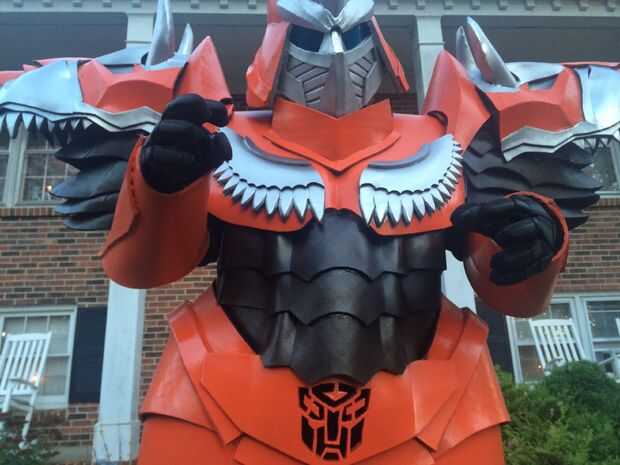 Para los brazos, tengo más mis brazos cubren por armadura de hombro así que sólo necesito para que mis antebrazos se vean más grandes! Hice con espuma más fina y les envuelve mis brazos hasta que me dieron el aspecto que quería. Usaba guantes de lacrosse antiguo pintados con pintura de tela negra para mis manos que eran perfectos para un transformador!