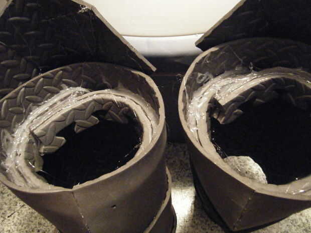 Yo diría que esta es la parte más fácil del traje entero, al menos eso es lo que yo pensaba! Por supuesto es más fácil que el resto del traje, aún tardó un par de días para averiguar. Tienes que planificar realmente la armadura de la pierna para poder caminar! Tenía mi pierna armadura vienen hasta a las espaldas de mi rodilla por lo que siendo en su mayoría pude caminar, aunque luché un poco. También tienes que deje un espacio entre la armadura de la pierna y los pies para poder mover los tobillos para continuar a caminar!