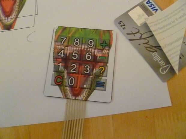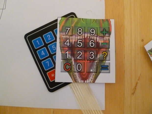 a continuación, cortar cuidadosamente la sobreposición del teclado de la cinta adhesiva. Retire su respaldo y suave cuidadosamente la cinta adhesiva hacia abajo en el teclado usando algo como una tarjeta de crédito. Esto ayudará a evitar las burbujas de aire y se asegurará de que su papel se adhiere entre los botones ligeramente levantados en el teclado de membrana.