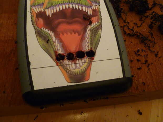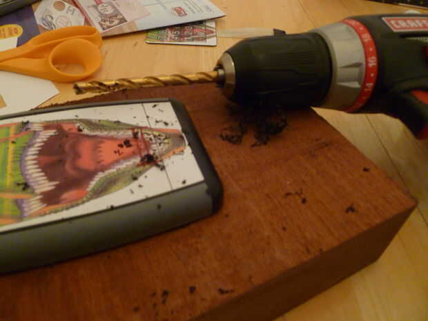 Con su cuarto pulgada broca, perforar cerca de 4 al lado del rectángulo marcado apagado.
