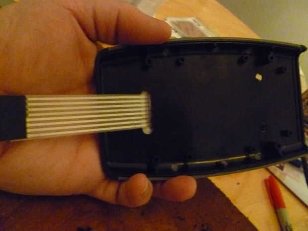 No retire el papel protector de su teclado numérico aún.  Hacer una prueba de rápido ajuste para asegurarse de que el cable de cinta del teclado se deslizará en la ranura cuando el teclado está correctamente alineado con la tapa de la caja.