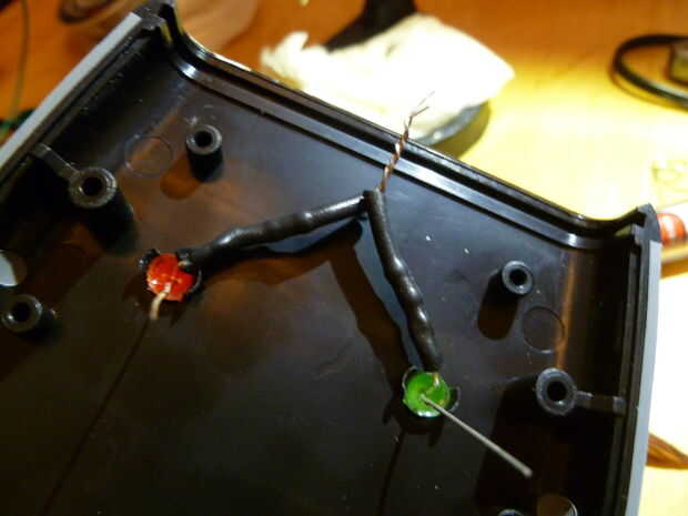 Tuerza los extremos de "Cátodo" de los LED, pero no soldar sin embargo.
