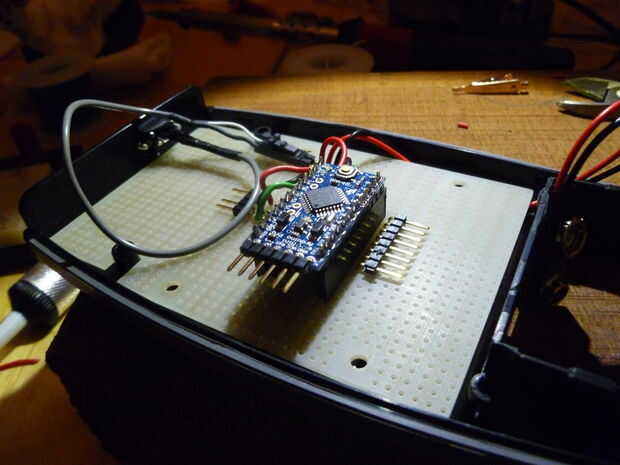 Inserte su Arduino Pro Mini (o de la soldadura en su lugar si usted decidió no usar los encabezados femeninos recomendados)