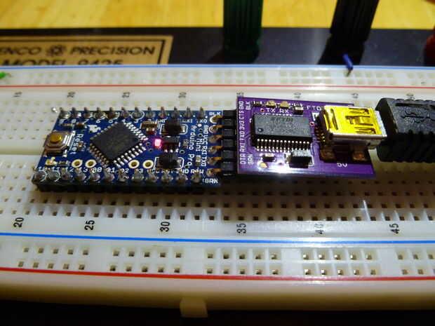 Leer el Sparkfun Tutorial para familiarizarse con su Arduino Pro Mini, especialmente si usted es nuevo en "Arduino". Aunque la versión tutorial menciones los 3.3V, es todavía aplicable a la versión 5V. Asegúrese de que utiliza el programador FTDI 5V y seleccione la versión de 5V del Arduino Pro en el IDE de Arduino cuando están programando. También, utilizar el IDE de Arduino más reciente. Usted no tiene que descargar la versión anterior que se muestra en el tutorial.