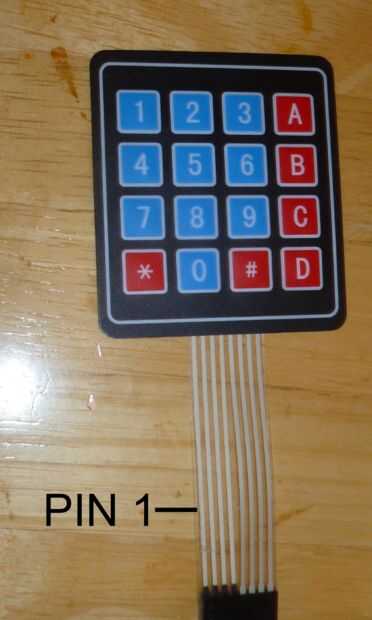 Usé un encabezado recto macho 8 pin para conectar el cable de cinta desde el teclado a la placa. Las conexiones son las siguientes: