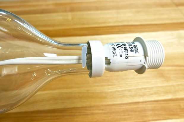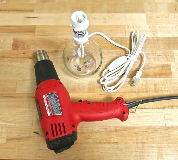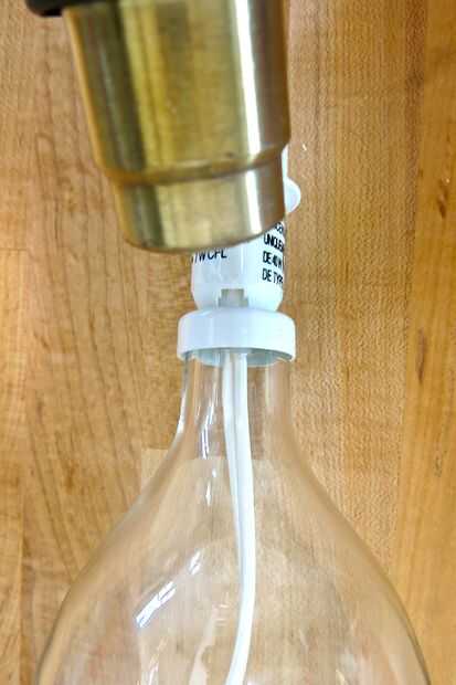 Puede utilizar un secador de pelo o una pistola de calor para este paso, lo que tienes en la mano. Utilicé una pistola de calor es más baja. Señalando directamente en el metal, gire la base de la lámpara de Brån ya que calienta el metal. Con una pistola de calor este paso tardó unos 7 segundos. Utilizando un objeto contundente, o los dedos con guantes protectores de calor, comienzan a quitar el accesorio del metal de la base de vidrio. Si el pegamento no ha llegado lo suficientemente caliente, trate de calentar nuevamente. Una vez que han roto el vínculo de pegamento, puede terminar quitando el accesorio del metal con la mano. Por favor Ser muy cuidadoso en este paso como el metal puede estar bastante caliente y puede quemar las manos. Si el metal es demasiado caliente al tacto, usar guantes protectores de calor u otras herramientas al ayudante en el retiro para que puedan evitar contacto con la piel.