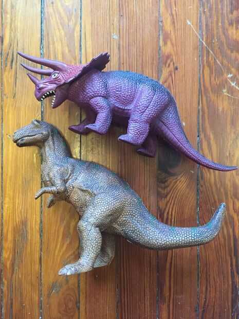 Usted puede encontrar dinosaurios, como los utilizamos, en una tienda local de la tienda de segunda mano o de segunda mano por un precio barato. También puede comprar luego en tienda de juguetes para niños nueva marca si no puede encontrar segunda mano en cualquier lugar. Asegúrese de que los dinosaurios están hechos de espuma u otro material que sea fácil de cortar.