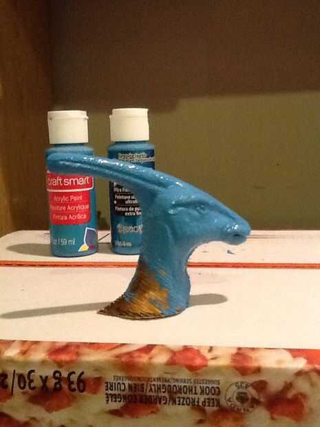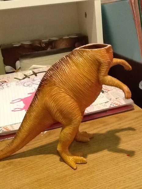 Ahora espero no se ha vuelto que el dinosaurio a cortarles la cabeza, fue emocionalmente difícil para mí. Fácilmente su cabeza y arena donde corté por lo que es nivel y parcialmente recto. Siguiente dolor o pintura de aerosol la cabeza su color y dejar seca.