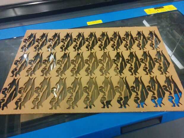 Si usted no está usando un cortador del laser, impresión del PDF, pegamento o cinta adhesiva a un pedazo de cartón y corte a lo largo de las líneas con un cuchillo del Exacto. Requiere múltiples pasadas.