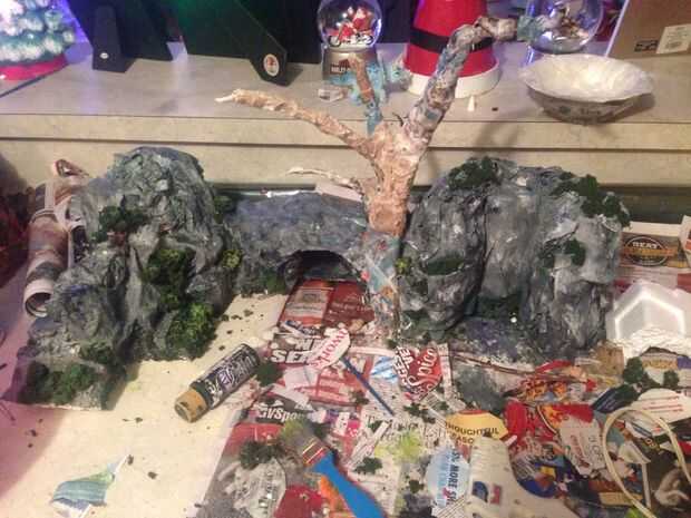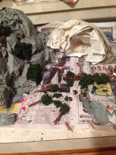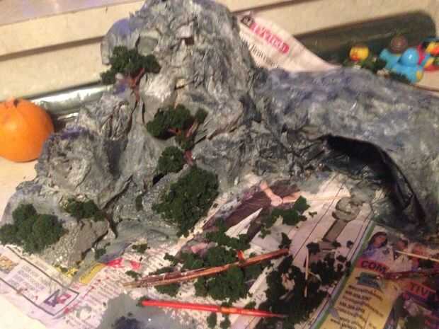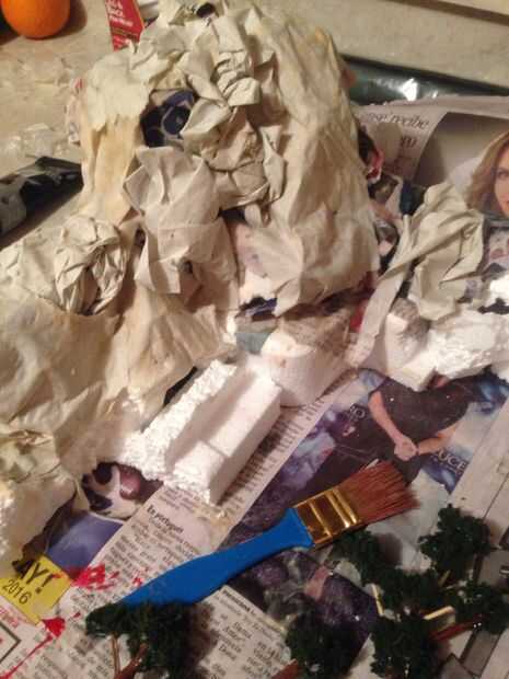 Mezclar la mezcla de papel maché, empezar por desmoronando por su papel... Introducirlo en la mezcla y acumulan en la espuma de poliestireno, enloquecer o mantenerlo simple, es realmente suya, hice 3" rock-como" estructuras incluyendo una pequeña cueva que hice simplemente haciendo un boca "u" y colocarlo con un montón de la mezcla y moldeo comenzó mediante la adición de un montón de capas,