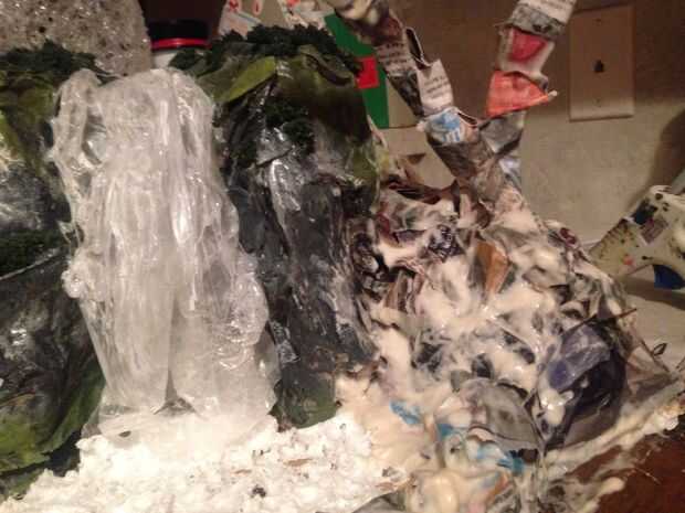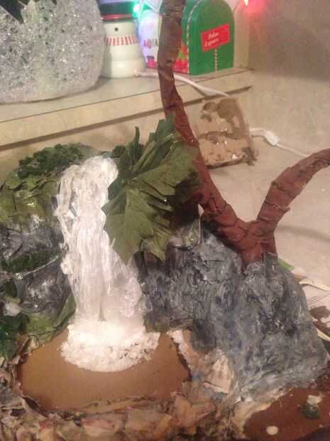 Cortar un gancho de alambre en 3 secciones (como grande o pequeño como usted tenía) jugar con la forma, la mayoría palmeras tienen un ligero - curva exagerada a ellos. Una vez que te decides por esto, se adhiere a una base de espuma de poliestireno poner un poco de pegamento caliente sobre ellos para evitar que se mueva alrededor de demasiado, comienzo que sumerge el periódico en la mezcla de papel maché y su estructura, cubierta de completamente, incluyendo las piezas de suspensión, que tan grueso como quieras esto los hará más fuertes, recuerde dejar que las capas sequen completamente entre 24-36 horas , después de su secado se adhieren a la cascada con una mezcla más gruesa de la mezcla de papel maché y crear una pared poco transparente entre el 2 y deje seco, ahora pintura!!!!!!