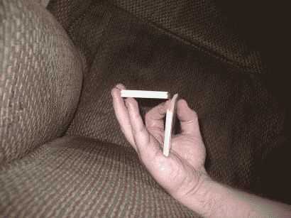 Su pinky, en este punto, también mantiene la tarjeta inferior Deslice hacia adelante.