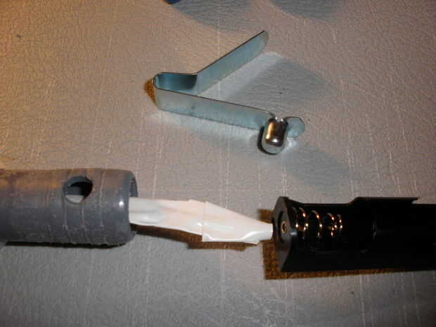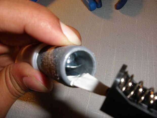 -Con los alicates de nariz de aguja, alcanzar dentro del tubo y agarrar el borde de la tecla.