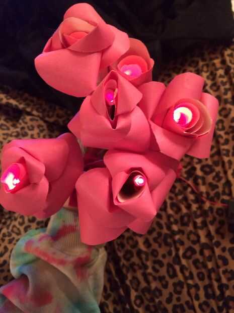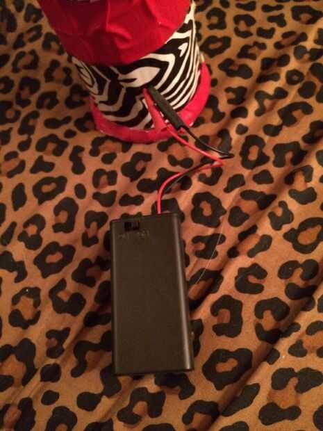 Soldaduras rojo LED al cable que se está pegando para arriba lanzó el tallo. Había soldado los cables rojo y negro positivo y negitve. y en el otro extremo conecta todos los extremos juntos y luego a los alambres de terminales de batería en el la la batería V 9 con un encendido apagado interruptor.