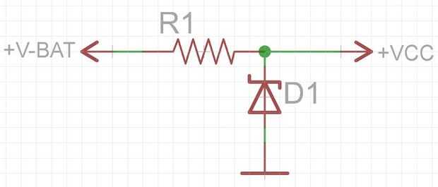 Para calcular la resistencia serie necesaria, resta el voltaje de salida de la tensión de alimentación y dividirlo por la corriente deseada: (12V - 3, 3V) / 30mA = 290Ω. Otra cosa a tener en cuenta aquí es disipación de energía. La resistencia reducirá 8.7V en 30 mA, 0.261W de la energía de disipación. Un 0.5W resistor debe ser utilizado. Si no está conectada carga, el diodo Zener consumirá la 30mA toda 0.099W de la energía de disipación. Debe utilizarse un 0.2W o diodo mayor. Incluso con nuestro ejemplo carga, el diodo Zener consumirá la mayor parte de la corriente cuando el LED no es ser iluminado. Por esta razón este circuito puede ser muy ineficiente.