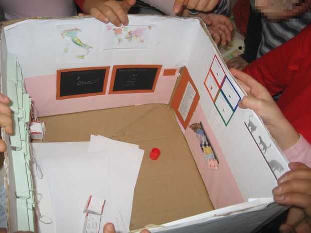 - Una caja grande de cartón, la forma sería más o menos la forma de tu salón de clases.