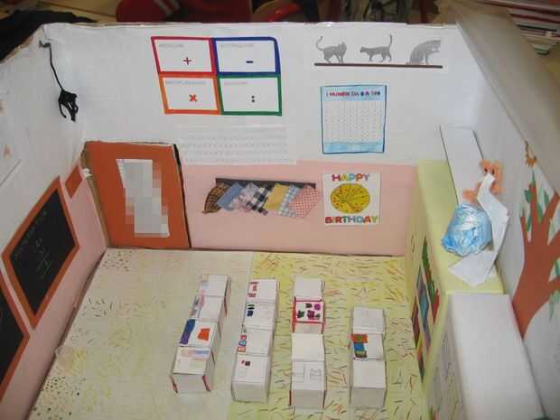 Cada alumno tenía uno de él y había decorado con libros, caja de lápices, cuadernos y poner su nombre en la parte delantera.