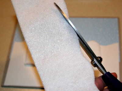 a continuación, cortar algunos snowbanks de fieltro blanco. Para mi 6 "x 8" marco (Monte 4 x 6 pulg.), usé dos trozos de fieltro, 2" y 2 1/2" pulgadas de alto. Tuyo variará dependiendo del tamaño del marco.