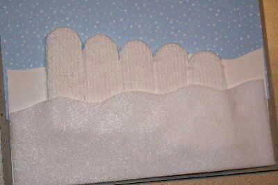 Alinee el primer snowbank cubriendo la parte inferior de los dedos del guante. Establecer el marco en el lugar para confirmar la alineación. Ajuste según sea necesario, luego pegar en el lugar.