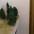 ahora añadir la hierba verde al bosque primero, :)... me e ir al carpintero más cercano y obtener algunos aserrín, tamiz para quitar todos los trozos grandes de madera, luego tomar el serrín fino en tres diferentes plástico / papel tazas (aproximadamente 1/2 taza cada una), ahora añadir tres diferentes tonos de verde a tres tazas con aserrín y mezcla bien , usted puede mezclar unas gotas de agua si es necesario. Añadir una capa de pegamento a la zona donde quieres el efecto de la hierba y espolvorear el serrín. Consulte la foto si es necesario.