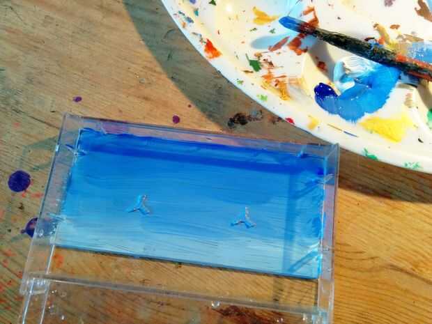 Si no tienes confianza con la pintura, o simplemente desea lo transparente usted puede omitir esta parte. Alternativamente, también puede ir encontrar una simpática imagen de un paisaje paisaje en google, escalarla al tamaño correcto, imprimirlo y pegar en la parte posterior.