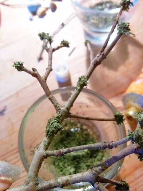 Para que las hojas luzcan un poco más denso, también poner unas gotas de pegamento en medio del 'árbol', algo y sólo al final de las ramitas.