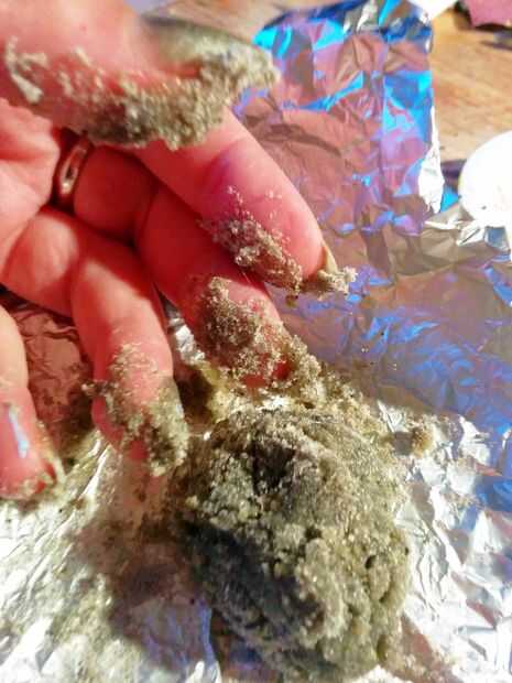 Mezclar bien juntos, hasta que tienes un montón de barro muy pegajoso de arena. Ahora tienes que trabajar con rapidez!