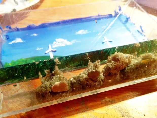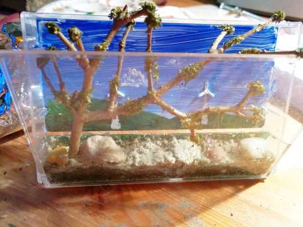Poner el árbol y las rocas. Las rocas más probable es que no mantenga por ahora, pero ellos en lugar de todos modos, para hacer una impresión en la arena de la prensa.