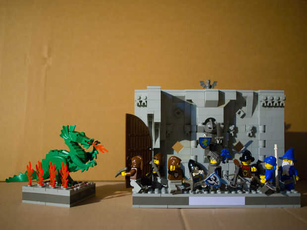 Esto fue una muy divertida compilación, utilizando mis piezas de Lego de caballero y otros varios ladrillos. Tardé en cualquier lugar entre 40 y 60 horas para completar el modelo, dispersos en alrededor de dos semanas. Mi creación se basa en una tabl