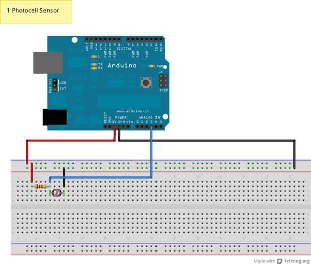 El sensor de luz se utilizará para determinar si el bate está despierto o dormido. El sensor de luz puede colocarse en cualquier lugar en el diorama y es por cable como en el diagrama.