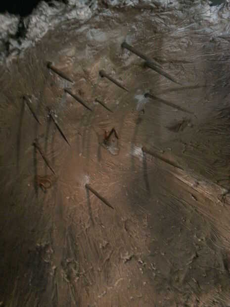 Perforar pequeños agujeros en la parte superior de interior de la cueva, luego pegamento pintados afilados palos en los agujeros. Asegúrese de que el hielo no molestarían en el movimiento de las alas del murciélago.