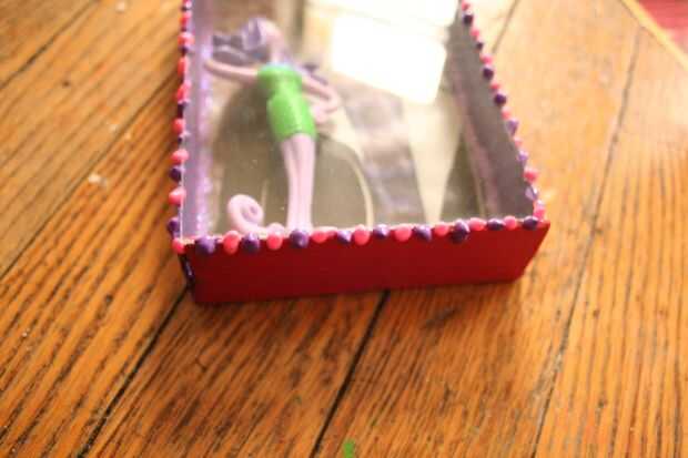 Ahora, caliente pegamento el cristal a la parte delantera del bastidor y recortar los bordes ásperos con pintura puff. Ponerlo a secar, y ya está listo!