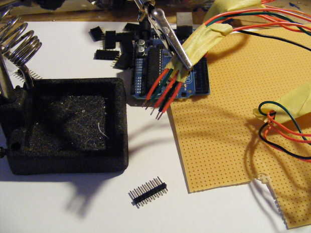 Puesto que quería ser modular y tiene un montón de encabezados para trabajar con, pongo encabezados a utilizar para las conexiones a los cables de puente a arduino.