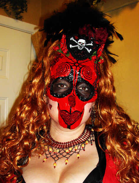 Cuando realizo otra máscara (y lo haré porque éste era bastante fácil y un gran éxito en la fiesta), voy a ser seguro y encontrar un cráneo más grande para utilizar como molde y probablemente la línea el interior entero con fieltro para mayor comodidad. TTFN!