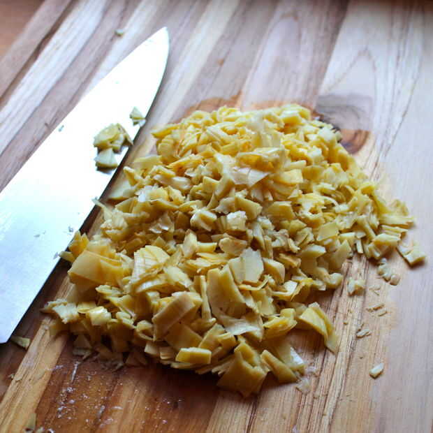 Paso 2: cortar los corazones de alcachofa y escurrir la espinaca