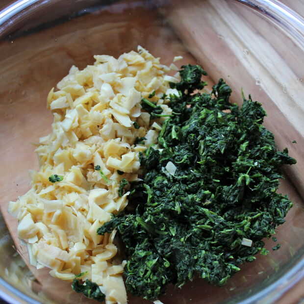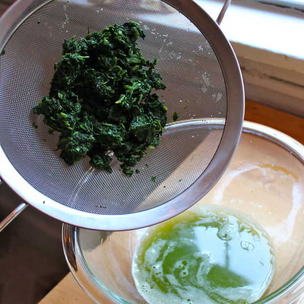 Una vez que se descongela las espinacas, exprima hacia fuera cualquier exceso de agua.