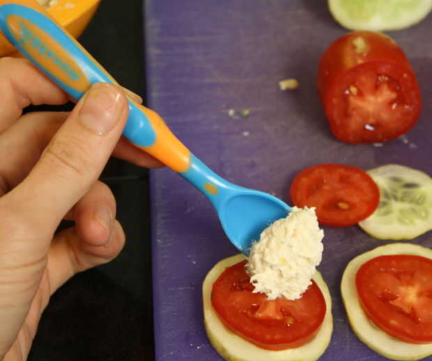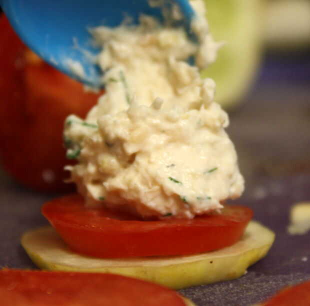 Para mejores resultados, deje un bonito anillo de tomate visible alrededor del borde de la bola de la dip.