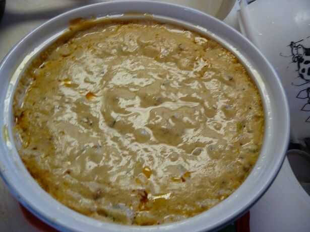 Convertir la mezcla en una cacerola de 1 cuarto de galón. Tapar y hornear 20-25 minutos hasta que caliente y burbujeante.