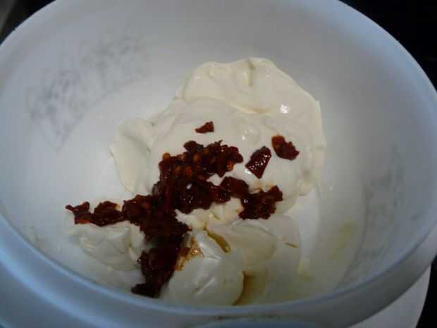 Combinar el queso crema ablandado, crema agria, chiles chipotle picados y sal de ajo en un tazón mediano. Batir hasta que quede suave. Sabor. Añadir más sal y chiles chipotles al gusto.