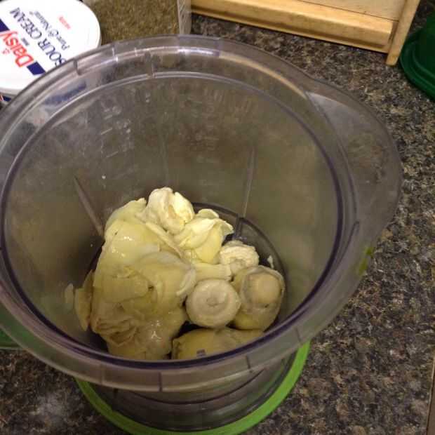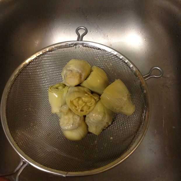 Sacar la alcachofa. Poner las alcachofas en un colador y cadena de todos los líquidos y poner dentro de blender.