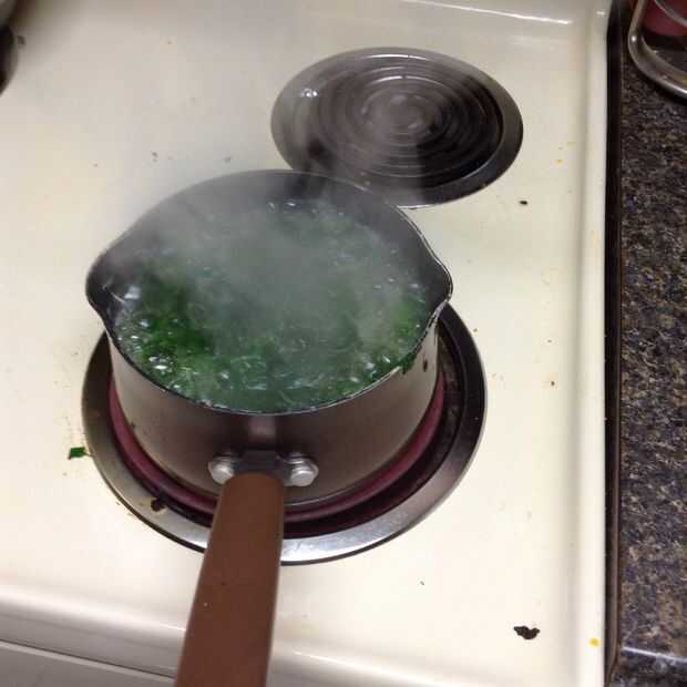 Después de las espinacas le van a querer filtrar el agua hirviendo. Asegúrese de obtener como mucho líquido como puede salir, no desea que su inmersión que cata empapado. Poner las espinacas en la licuadora.