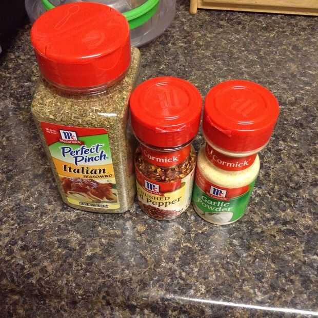 Tu receta debe estar dentro de la licuadora por ahora lo siguiente que vas a hacer es poner en tus especias no tengo una cantidad exacta que usted porque depende de cómo estás tratando de tener un sabor. Si desea solo sabor regular buena y justo acaba de poner en un montón de italiano condimento una pizca de pimiento rojo picado y ajo en polvo, preferido. Si querías un poco más picante pone en más machacado pimentón o si te gusta el sabor del ajo en polvo ajo mucho más depende de usted.