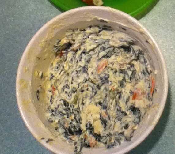 Mezcla 10 onzas de espinaca picada en el recipiente con un envase de yogurt, una taza de semiescabechadas, todo el paquete de mezcla de vegetal, y por supuesto, los tres picados cebolla de verdeo. Su puesto en la nevera durante unas dos horas y se realiza la inmersión!