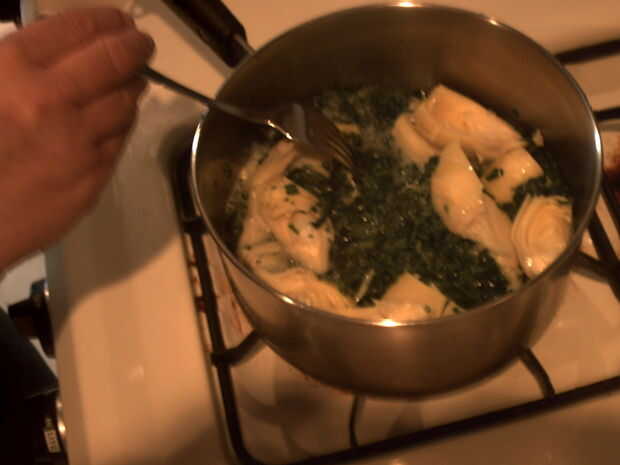 primero debes hervir las espinacas y ardichoke en sobre una taza de agua
