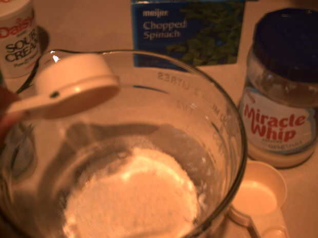 dips de espinacas son muy ricas y muy fáciles de hacer!  Este es una gran aperitivo/merienda para cenas y fiestas.Tiempo de preparación es alrededor de 10-15 minutos (dependiendo de tus habilidades para picar!)Paso 1: ingredientes 250ml de mayonesa25