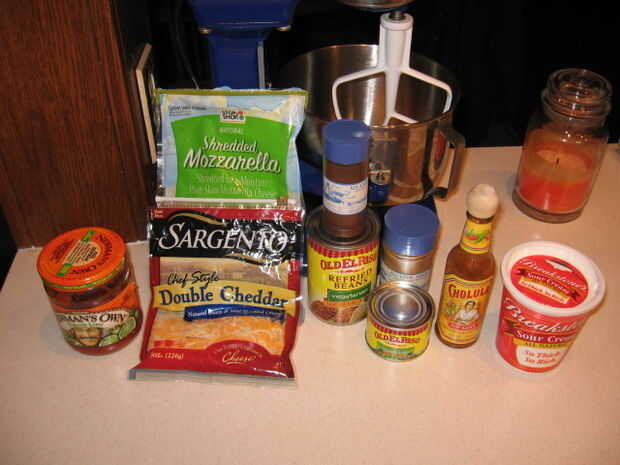 Super dip de frijoles fácil y simple. Hacemos esto para convivios y fiestas así como por almuerzo o cena.Paso 1: ingredientes Ingredientes:paquete de 8 oz queso crema16 oz lata de frijoles refritos2 tazas de queso cheddar ralladoChips de tortillaHerr